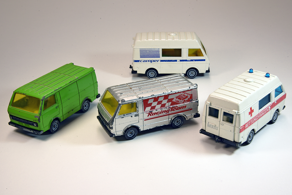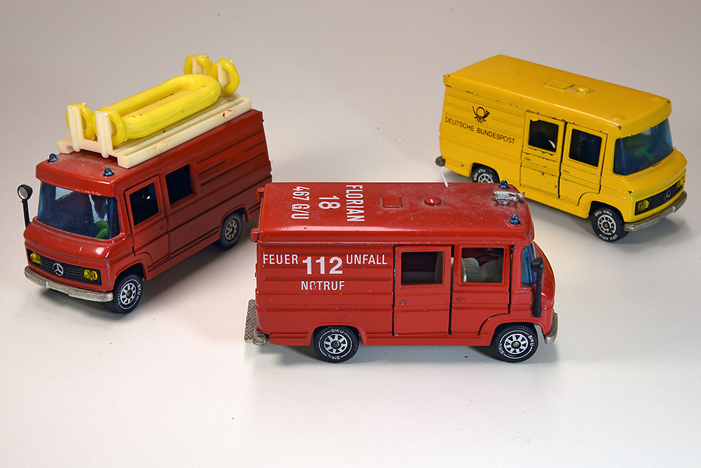 Zu meinen automobilen Alltagshelden zählt der sogenannte "Düsseldorfer Transporter". Den gibt es zwar auch in 1/18 von PremiumClassixx, allerdings ist das Modell recht teuer und nur in der Variante "Porsche Renndienst" zu haben. Ich möchte meinen "DüDo" allerdings gerne in gelb und mit Posthörnchen auf der Seite. Also, kurzer Flashback in die Kindheit: Damals hatte ich den von Siku, wenn auch in einer Variante mit überbreiten (m.M.n. völlig unpassenden) Rädern. Mir war allerdings bekannt, dass es das Modell bereits zu Sikus V-Serie-Zeiten gab - mit passenderen Rädern (hinten sogar mit Doppelbereifung) und einem schöneren Kühlergrill mit eingesetzten (statt aufgedruckten) Scheinwerfern. Genau so einen wollte ich haben, also ging ich auf die Suche. Wichtig war mir dabei, dass das Modell noch sämtliche Türen hat (die gingen gerne verloren) und auch sonst nicht vollkommen abgerockt sein sollte (Spielspuren ja, aber eben kein Totalschaden). Nach recht kurzer Suche wurde ich fündig, heute trudelte das Autochen bei mir ein - und ich bin begeistert! ![]()